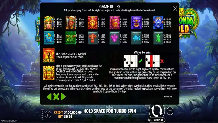 ตัวอย่างเช่น หากคุณได้สัญลักษณ์งูอนาคอนด้า 3 ตัวติดกัน คุณอาจได้รับรางวัลพื้นฐาน 2-5 เท่าของเดิมพัน แต่หากกริดขยาย รางวัลอาจพุ่งสูงถึง 10 เท่าหรือมากกว่า นอกจากนี้ เกมยังมีฟังก์ชัน Auto Spin ที่ตั้งค่าได้ถึง 100 รอบ ทำให้สะดวกสำหรับผู้เล่นที่ชอบเล่นยาวๆ