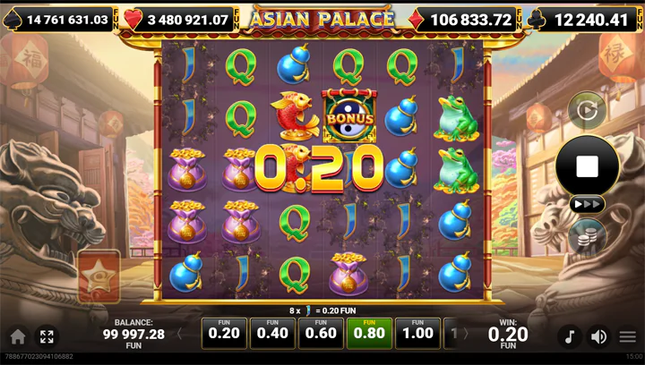 จากรีวิว ระบุว่า สAsian Palace มี RTP สูงถึง 96.45% ซึ่งถือว่าดีเยี่ยมสำหรับเกมสล็อตประเภท cascading (แบบเรียงซ้อน) ทำให้เกมนี้ถูกพูดถึงในหมู่ผู้เล่นว่า “แตกง่าย” เพราะระบบการจ่ายรางวัลแบบ Pay Anywhere ที่ไม่ต้องเรียงตามเพย์ไลน์แบบ นอกจากนี้ ยังมีฟีเจอร์มัลติพลายเออร์ที่สามารถเพิ่มขึ้นถึง x100 ในโหมดฟรีสปิน ทำให้ผู้เล่นมีโอกาสได้รับรางวัลใหญ่จริงๆ