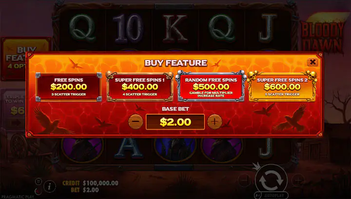หัวใจหลักที่ทำให้สล็อต Bloody Dawn ถูกพูดถึงมากที่สุดคือฟีเจอร์โบนัสที่ “โหดจัด” และสามารถทำให้หน้าจอสั่นสะเทือนจากการแตกของรางวัลใหญ่ ฟีเจอร์หลักคือ Free Spins ซึ่ง激活ได้โดยการได้ Scatter 3 ตัวขึ้นไป (รูปพระอาทิตย์ขึ้นนองเลือด) คุณจะได้รับ 10 ฟรีสปินเริ่มต้น และในโหมดนี้ multiplier จาก tumble จะไม่รีเซ็ตหลังจากรอบชนะ ทำให้มันเพิ่มขึ้นเรื่อยๆ จนกว่าจะจบฟรีสปินทั้งหมด