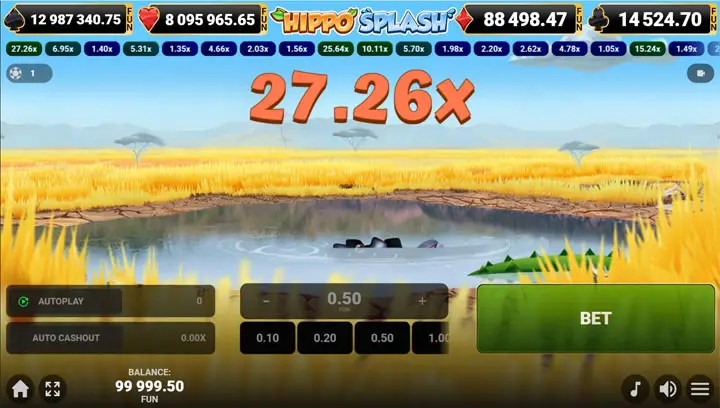 นอกจากนี้ เกมยังมี Auto Cash Out ที่ตั้งค่าได้ล่วงหน้า เช่น ตั้งให้ cash out อัตโนมัติที่ 2x เพื่อป้องกันความโลภ ซึ่งเป็นเครื่องมือที่ดีสำหรับผู้เล่นที่อยากเล่นอย่างมีวินัย โบนัสเหล่านี้ทำให้ Hippo Splash ไม่ใช่แค่เกมโชค แต่เป็นเกมที่ต้องใช้สมองและจังหวะ